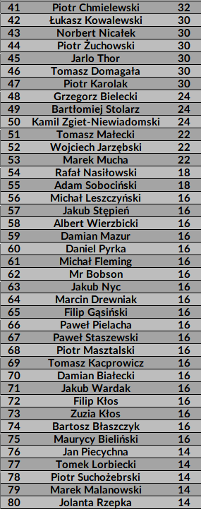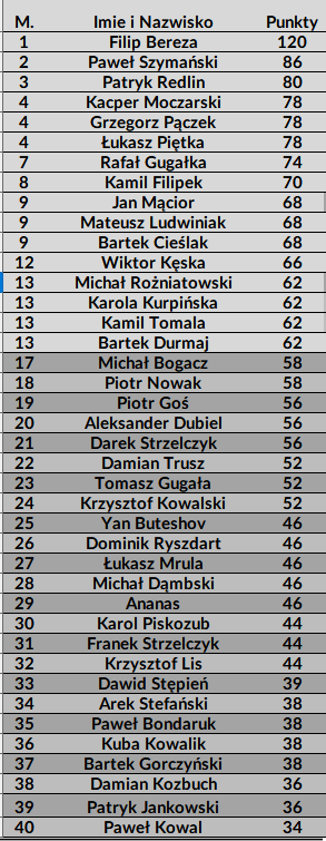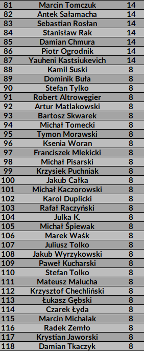 Gratulację dla finalistów i dziękujemy za gre pozostałym zawodnikom.