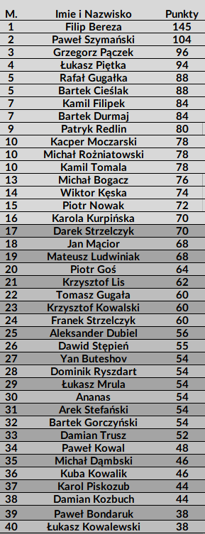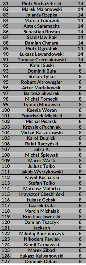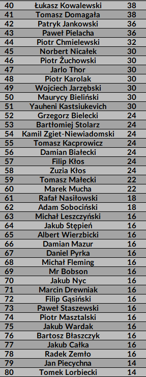 5-8 Michał Bogacz (1×180, HF 110, BL 15)